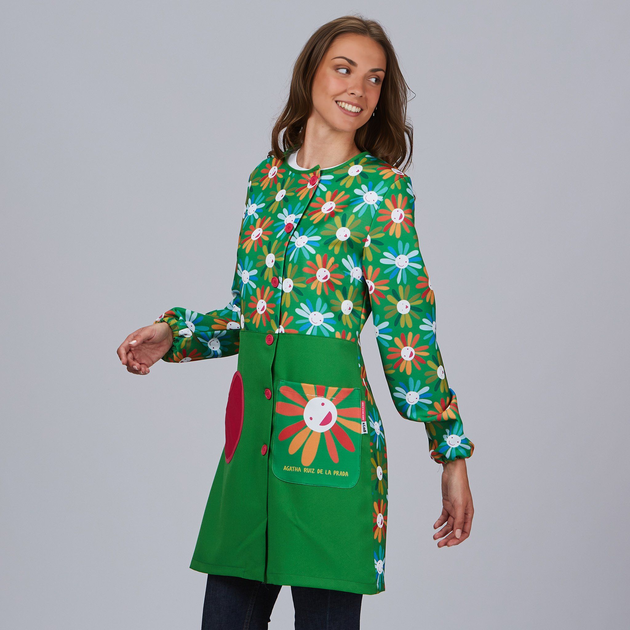 Bata de manga larga y puños de goma. Cierre con botones. Incluye 2 bolsillos inferiores uno con forma de corazón y pinzas en la espalda para mayor ajuste. Estampado exlusivo de Agatha Ruiz de la Prada