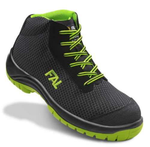 Bota de seguridad. Puntera no metálica Vincap (Resiste un choque de 200 julios y una compresión de 15 Kn. Aligera de peso el calzado en un 47% proporcionando un aumento de confort. Evita problemas de oxidación y es antialérgica). Plantilla antiperforación textil. Suela de poliuretano bidensidad. Nivel máximo de deslizamiento SRC. Disponible en color Negro con forro interior, cordones y suela en Verde.