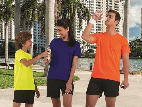 Camiseta unisex con cuello redondo, de manga corta ranglán partida. Prenda ligera ideal para hacer deporte ya que gracias a su confección en tejido transpirable facilita la evacuación del sudor. Doble pespunte en mangas, cuello y en el bajo de la prenda. No decolora con la lejía y no necesita planchado. Disponible una amplia gama de colores muy vivos. Compra mínima 5 Unidades.