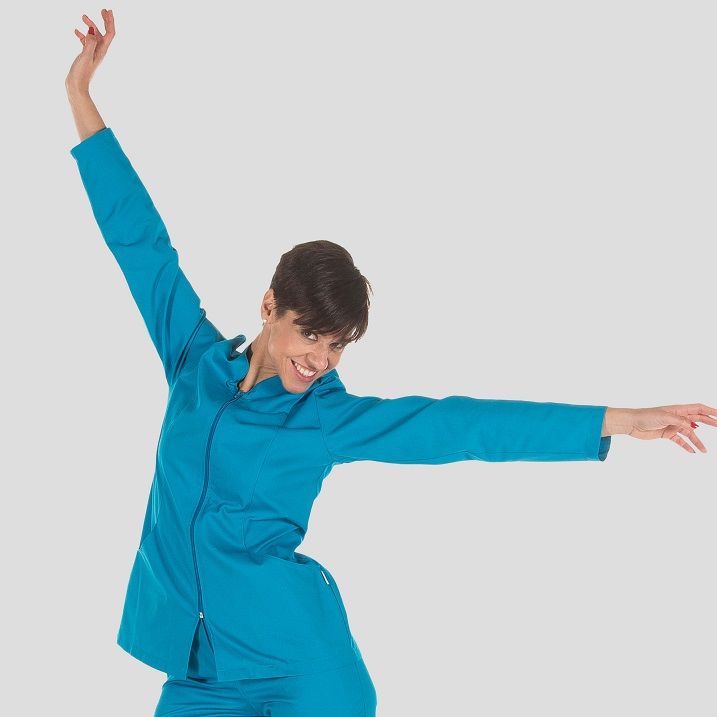 Casaca semiajustada con pinzas traseras. De manga larga con cierre central de cremallera al tono. Abertura en la espalda para mayor movilidad. Incluye 2 bolsillos inferiores. Gran resistencia al peeling por los roces.