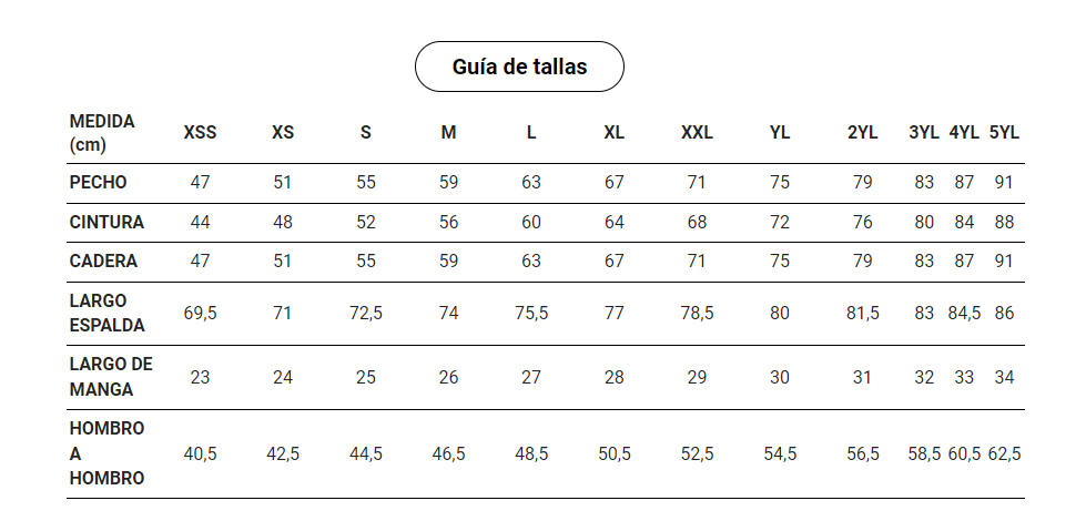 **Ver foto con la Guía de Tallas antes de confirmar pedido.