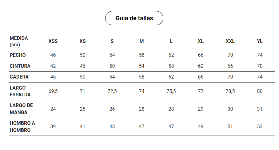 *Ver foto con la Guía de Tallas antes de confirmar pedido.