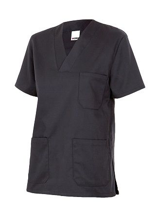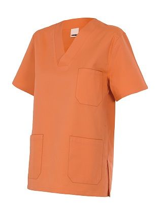 Casaca con cuello de pico y manga corta. Tiene aberturas laterales para mayor comodidad. Incluye 2 bolsillos de parche inferiores y 1 superior. Disponible en una gran gama de colores.