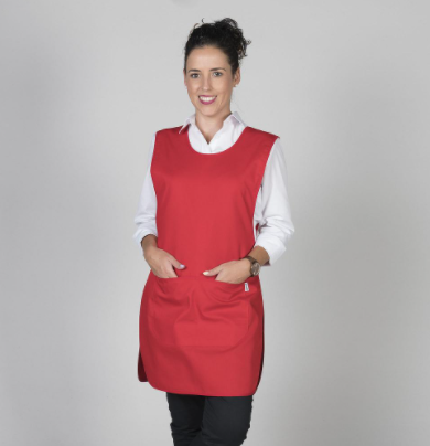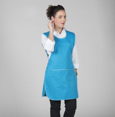 Estola de tirante ancho. Talla única ajustable con cintas que se cruzan y se atan en la espalda. Tiene un amplio bolsillo central dividido. Tejido muy suave y transpirable. Tolerante a las salpicaduras de lejía. Seca muy rápido y no necesita planchado. Disponible en una gran variedad de colores.