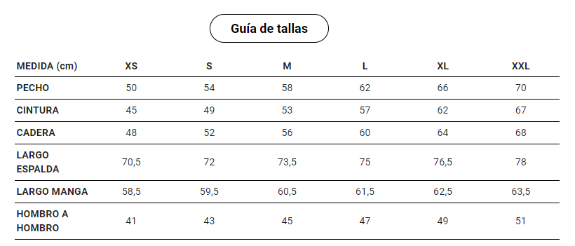 *Ver foto con Guía de Tallas antes de confirmar pedido.