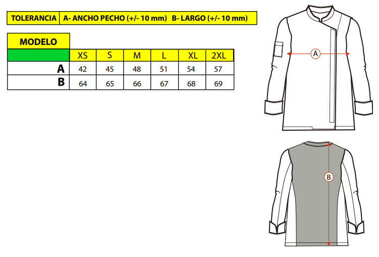 También disponible en manga corta: CHAQUETA DE COCINA MUJER MANGA CORTA.