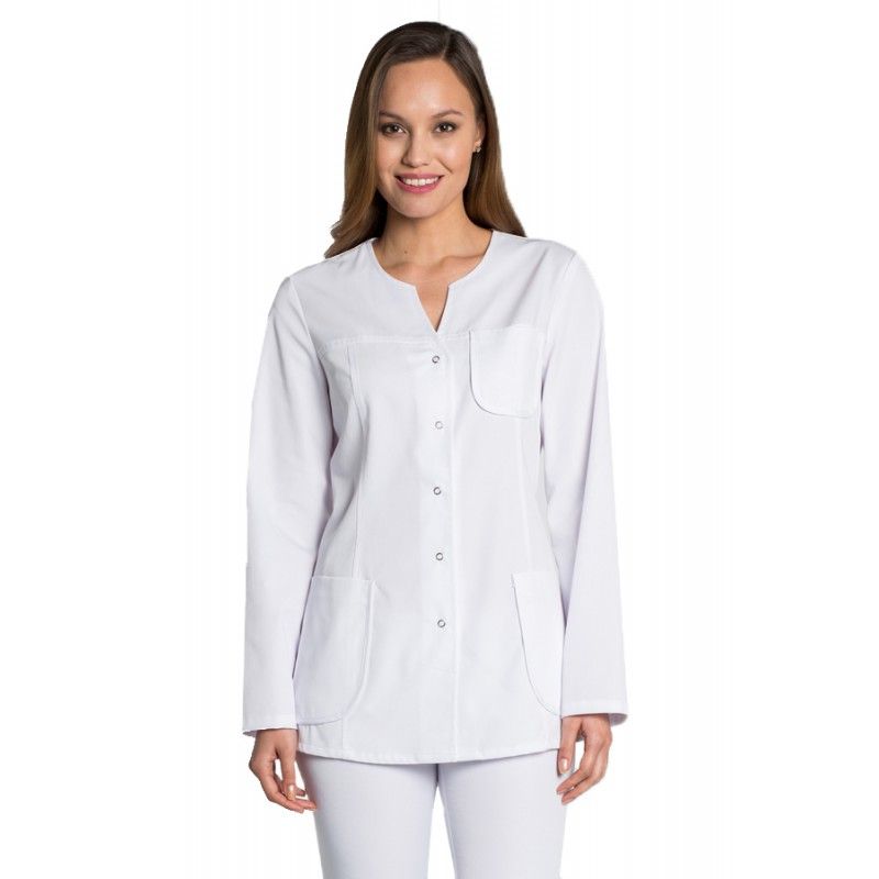 Chaqueta para mujer de manga larga. Cierre central con corchetes de arandela. Incluye 2 bolsillos inferiores y 1 superior, todos ellos contorneados con vivo al tono.