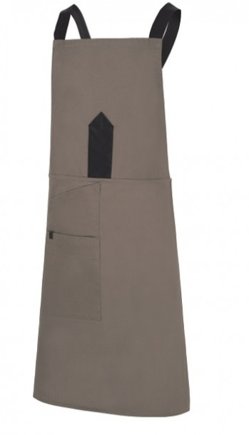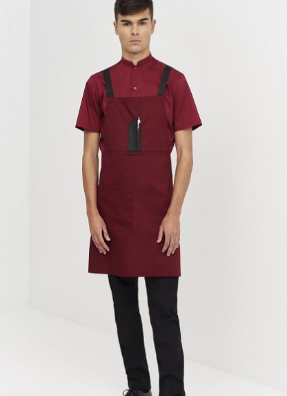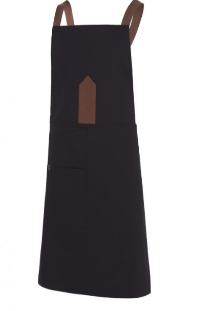 Delantal unisex con tirantes cruzados a la espalda. Ajustable en la cintura. Incluye 1 compartimento para bolígrafos en la parte del peto. Detalle de polipiel a contraste de color. También un bolsillo compartimentado en el lateral. Talla única ajustable a todas las medidas. Disponible en 4 colores diferentes.