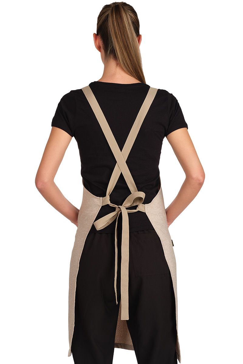 Dota a tu negocia de un toque especial y elegante con este delantal textura tirantes cruzados.