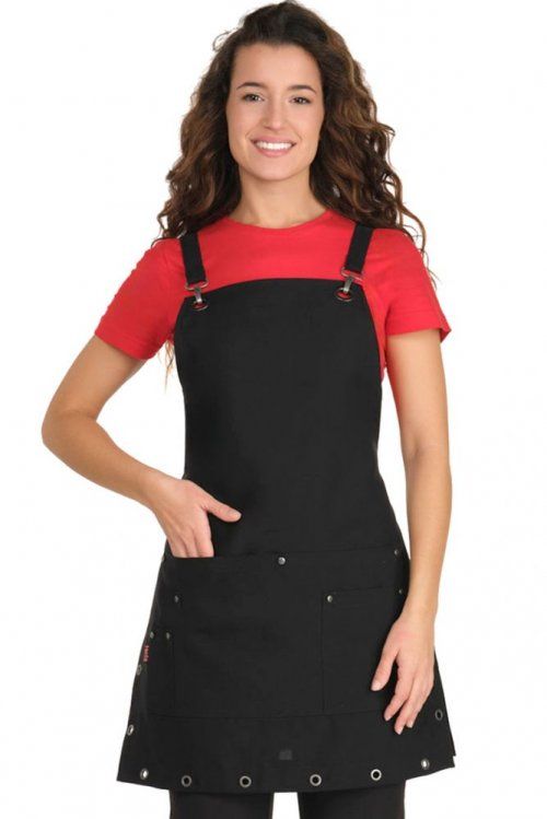 Elegante estola con tirantes y mosquetón Con varios bolsillos delanteros. Talla única ajustable con cintas que se cruzan y se atan en la espalda.