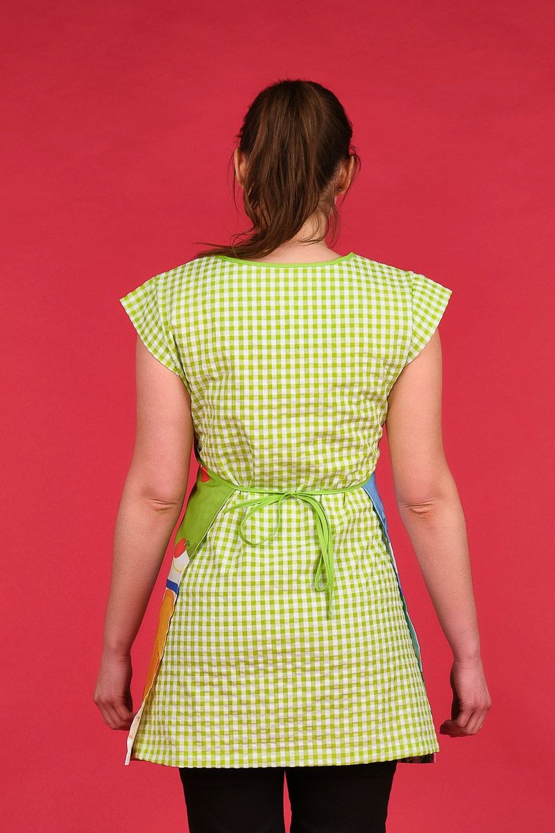 Estola de cuadritos vichy verdes con bolsillo en el frente y dibujos de las estaciones del año. Está confeccionada en tejido suave. Talla única. No necesita planchado.
