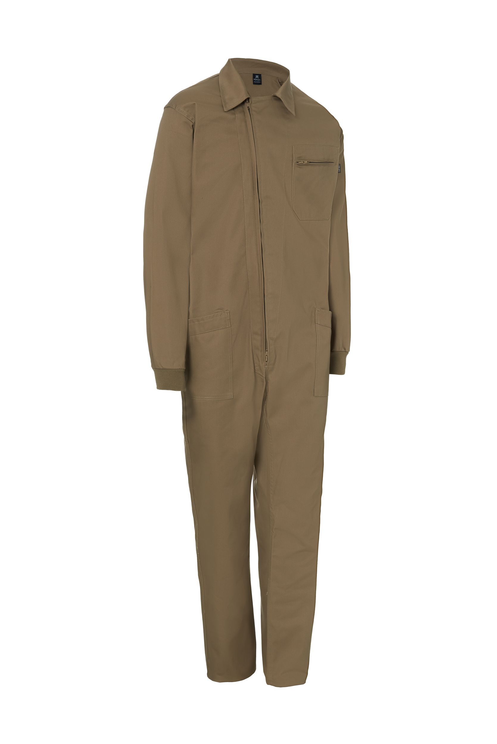 Mono de trabajo de manga larga con puños elásticos. Cuello camisero y cierre central con cremallera oculta. Incluye 1 bolso en el pecho de cierre con cremallera y 1 trasero con velcro y tapeta.