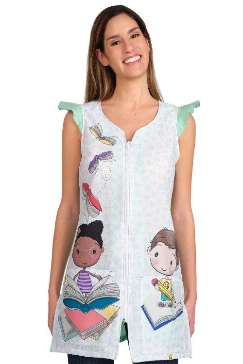FrenteFomenta el amor por la lectura desde el primer día de clase con esta exclusiva bata para profesora, una prenda que combina diseño pedagógico y estilo inigualable.