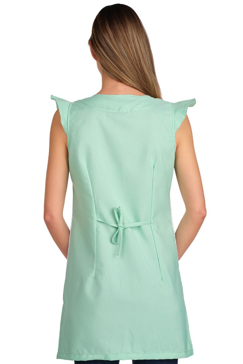 Incorpora delicados volantes en las sisas que aportan un aire femenino, ligero y profesional a tu uniforme diario.