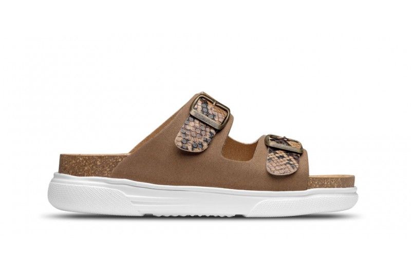 Sandalia de piel con horma anatómica y ergonómica. Suela de Eva ConfortLight y plantilla anatómica de corcho natural lo que produce una gran comodidad. Antideslizantes y ligeras. Ajuste en el empeine con dos hebillas metálicas. Fabricadas 100% en España y con material ecológico. Disponible en 4 colores.