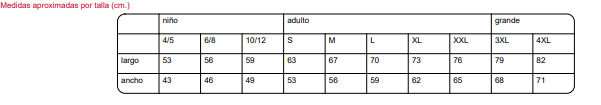 **Ver foto con Guía de Tallas antes de confirmar pedido.