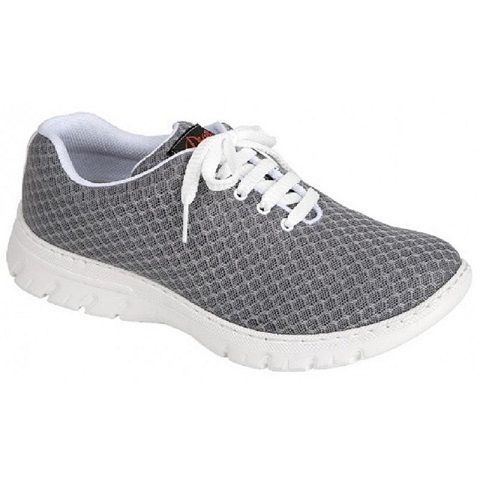 Zapatilla confeccionada en una sola pieza. Con diseño deportivo y sistema de cierre mediante cordones. Corte de rejilla transpirable. Está forrado en su interior con material textil acolchado. De horma recta con puntera redondeada. Incluye plantilla acolchada sobre espuma de poliuretano con tratamiento antibacterias. Suela de material EVA Xl Extralight, ultraligera, confortable, flexible y antideslizante. Facilita la evacuación de líquidos. Se puede lavar en frío y caliente hasta 40º.