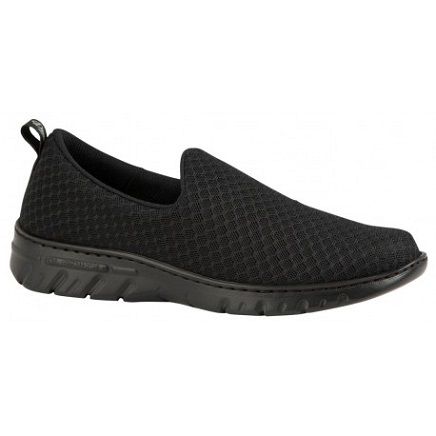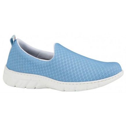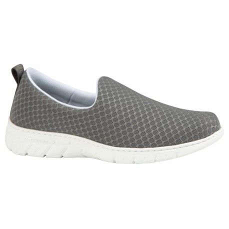 Zapatilla unisex de trabajo. Con corte de una sola pieza. Horma recta de puntera redondeada. En su fabricación incluye un tratamiento repelente a líquidos y fluidos. Corte de rejilla que facilita la transpiración. Forrado interior y collarín acolchado en tobillo para evitar rozaduras. También incluye doble plantilla acolchada sobre espuma de poliuretano termoconformado con tratamiento de carbón activo y antibacterias. Suela de Eva, ultra ligera y confortable además es antideslizante, antiestática y facilita la evacuación de líquidos. Lavable hasta 40º.