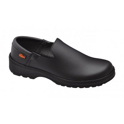 Zapato cerrado unisex, ideal para hostelería o sanidad. Fabricación mediante cosido suela-corte que asegura la unión de las piezas. Corte de microfibra muy transpirable. Antideslizante en seco y húmedo, con resaltes en la suela que facilitan la evacuación de los líquidos. Talón acolchado que evita que el zapato se salga al caminar o al flexionar las piernas. Su plantilla interior es de espuma acolchada de poliuretano, con un tratamiento antibacteriano. Lavable a 40º.