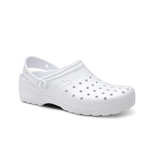 Zueco abierto unisex. Confeccionado en material EVA 100%. Antideslizantes, antibacterianos y confortables gracias a su horma ergonómica y anatómica. Flexibles y ligeros, pesa 95 grs. cada zueco. Correa abatible y plantilla con tejido Coolmax que evapora el sudor y mantiene fresco el pie. Lavable hasta 30º.